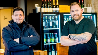 Tim Mälzer (l.) und Björn Swanson. +++ Die Verwendung des sendungsbezogenen Materials ist nur mit dem Hinweis und Verlinkung auf RTL+ gestattet. +++