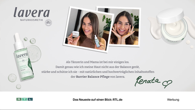 Die Zukunft deiner Haut beginnt jetzt! – dafür sorgt die neue Produktlinie "Barriere Balance" von lavera Naturkosmetik. Zur Inszenierung der Pflegelinie setzt die Naturkosmetik-Marke auf die Crossmedia-Kompetenz der Ad Alliance und auf die Let's Dance-Profitänzerin Renata Lusin als Markenbotschafterin. +++ Die Verwendung des sendungsbezogenen Materials ist nur mit dem Hinweis und Verlinkung auf RTL+ gestattet. +++