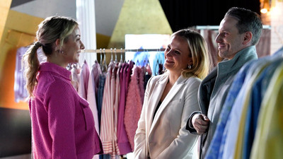Mode-Vloggerin Vivienne (Anna-Carina Woitschack, l.) unterhält sich mit Isabelle (Ania Niedieck) und Kilian (Marc Dumitru). +++ Die Verwendung des sendungsbezogenen Materials ist nur mit dem Hinweis und Verlinkung auf RTL+ gestattet. +++