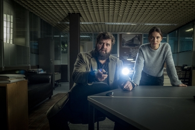 Ela (Cosima Henman) schildert Behringer (Antoine Monot) den vermutlichen Tathergang. +++ Die Verwendung des sendungsbezogenen Materials ist nur mit dem Hinweis und Verlinkung auf RTL+ gestattet. +++