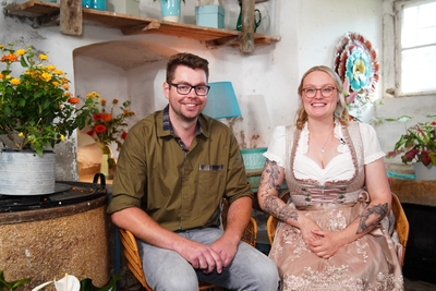 +++ ACHTUNG SPERRFRIST: KEINE VERÖFFENTLICHUNG VOR DEM 11.10.2022, 22:15 UHR +++ Jungbauer Max (26) aus Rheinland-Pfalz und Anna (25, angehende Erzieherin) stoßen bei der Fahrt zum Hof auf die kommende gemeinsame Zeit an. +++ Die Verwendung des sendungsbezogenen Materials ist nur mit dem Hinweis und Verlinkung auf RTL+ gestattet. +++