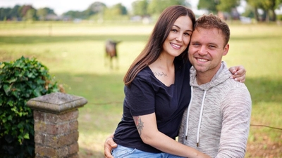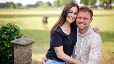 Milchbauer André (33) aus Nordrhein-Westfalen und Julia (29, technische Projektmanagerin aus Schleswig-Holstein) während ihrer gemeinsamen Hofwoche +++ Die Verwendung des sendungsbezogenen Materials ist nur mit dem Hinweis und Verlinkung auf RTL+ gestattet. +++