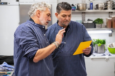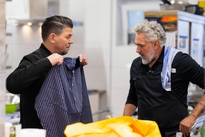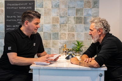 Tim Mälzer (l.), Roland Trettl +++ Die Verwendung des sendungsbezogenen Materials ist nur mit dem Hinweis und Verlinkung auf RTL+ gestattet. +++
