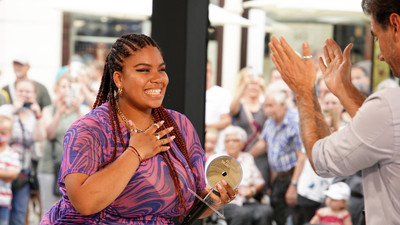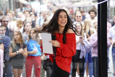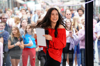 Abigail "Abi" Campos aus Leipzig bekommt die "Goldene CD" von Jurymitglied Florian Silbereisen und ist damit automatisch im Auslands-Recall. +++ Die Verwendung des sendungsbezogenen Materials ist nur mit dem Hinweis und Verlinkung auf RTL+ gestattet. +++