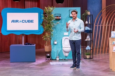 Giuseppe Leo präsentiert den Geruchsneutralisator und WC-Reiniger „AIR CUBE“. Er erhofft sich ein Investment von 200.000 Euro für 10 Prozent der Firmenanteile. +++ Die Verwendung des sendungsbezogenen Materials ist nur mit dem Hinweis und Verlinkung auf RTL+ gestattet. +++