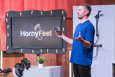 Das gab es noch nie in der "Höhle der Löwen": Janna Ensthaler duscht vor laufender Kamera! Denn noch bevor Peter Kreitmeir (38) die Höhle betritt und seine Duschfußfeile HornyFeet präsentiert, steigt die Investorin kurzerhand in die Dusche – und dreht das Wasser voll auf. Für den Einsatz spendet Nils Glagau 2.000 Euro an das Frauenhaus Braunschweig! Klatschnass verfolgt die Löwin nun den Pitch im Bademantel. Auch der 38-jährige Gründer zeigt vollen Körpereinsatz bei der Präsentation seines Produkts HornyFeet und demonstriert unter der Dusche, wie die Fußpflege einfach in die Duschroutine integriert werden kann. Der Hornhautentferner besteht aus einem stabilen Basiselement mit einer wechselbaren Trägerplatte, die ein spezielles Feilenblatt enthält. Dank starker Nano-Klebepads lässt sich das Produkt sicher in der Ecke jeder Dusche– an der individuell passenden Höhe – anbringen. Dann einfach mit dem Fuß über die Feile bewegen und die lästige Hornhaut verschwindet ganz nebenbei beim Duschen. Ohne Bücken, Sitzen oder wackelig auf einem Bein stehend. HornyFeet ist hygienisch austauschbar und kann separat ersetzt werden. Innerhalb von nur neun Monaten hat der Gründer einen serienreifen Prototyp erstellt und möchte jetzt mit der Hilfe eines Löwen HornyFeet auf den Markt bringen. Für 50.000 Euro bietet Peter Kreitmeir 25 Prozent der Firmenanteile.