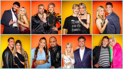 V.o.l.: Umut Tekin und Emma Fernlund, Rafi Rachek und Sam Dylan, Tessa Bergmeier und Freund Jakob, Vanessa Schmitt und Raúl Richter V.u.l.: Freund Michael und Gloria, Alessia Herren und Partner Can, Sarah Kern und Tobias Pankow, Theresia Fischer und Stefan Kleiser +++ Die Verwendung des sendungsbezogenen Materials ist nur mit dem Hinweis und Verlinkung auf RTL+ gestattet. +++