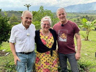 (v.l.) Sytse (65) aus den Niederlanden, Kaffeebäuerin Marisol (66) in Kolumbien, Frank (60) aus Hessen +++ Die Verwendung des sendungsbezogenen Materials ist nur mit dem Hinweis und Verlinkung auf RTL+ gestattet. +++
