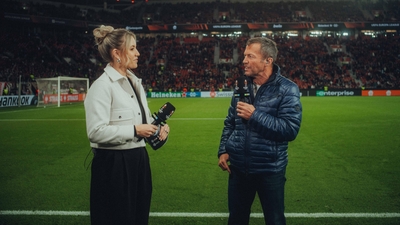 Moderatorin Laura Papendick mit RTL-Fußball-Experte Lothar Matthäus +++ Die Verwendung des sendungsbezogenen Materials ist nur mit dem Hinweis und Verlinkung auf RTL+ gestattet. +++