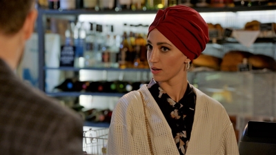 In meiner ersten Szene kommt meine Rolle Kian im Anzug in den Kiezkauf und sieht direkt an der Kasse Nazan stehen. Er kann seinen Blick nicht von ihr lassen und überlegt, wie er sie ansprechen soll. Kian geht also zur Kühltruhe und nimmt drei Stücke Pizza und fragt sie, welche er am besten nehmen soll? Im Gespräch mit Nazan merkt er, wie interessant er sie findet und hält seinen Blick mit ihr so lange, bis ein Business-Call dazwischenkommt. Er schaut ihr nochmal tief in die Augen, beantwortet den Anruf und verlässt mit einem letzten Blick zu ihr den Kiezkauf. Ein heftiger Flirt?