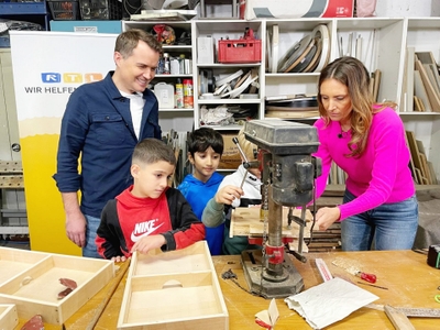 Es wird gehämmert, gesägt, gebohrt und geschraubt: In einer Schreinerei nahe Gelsenkirchen ist so richtig was los. Mit voller Begeisterung und hochkonzentriert bauen die Kinder und Jugendlichen aus dem RTL-Kinderhaus „Manus“ große Kisten, sägen Holzleisten auseinander und schrauben Bretter zusammen. Mit dabei: die RTL-Kinderhaus-Projektpaten Roberta Bieling und Christopher Wittich, die sich ein Bild von dem neuen Projekt „kreativraum“ der Walter Blüchert Stiftung machen wollen. Der „kreativraum“ soll das bestehende Angebot in mehreren RTL-Kinderhäusern ergänzen.