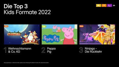 • Die drei erfolgreichsten Kids-Formate auf RTL+ waren „Weihnachtsmann & Co KG“, „Peppa Pig“ sowie „Ninjago – Die Rückkehr“.
