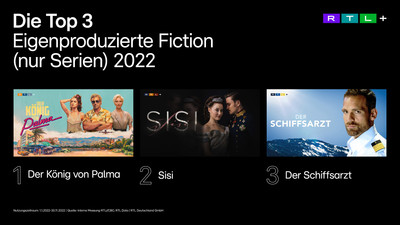 • Erfolgreichste Fiction-Serie auf RTL+ war „Der König von Palma“, gefolgt von „Sisi“ und „Der Schiffsarzt“. Auch im Free-TV begeisterten die Fiction-Formate ein Millionenpublikum („Der König von Palma“ mit bis zu 2,22 Mio. Zuschauer:innen, „Sisi“ mit bis zu 2,60 Mio. Zuschauer:innen im Dezember 2021 und „Der Schiffarzt“ mit bis zu 2,48 Mio. Zuschauer:innen).