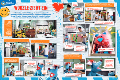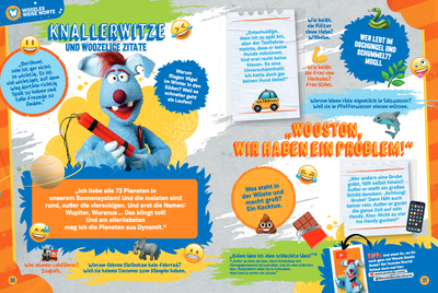 Außerdem sorgen wiederkehrende Rubriken für Struktur und Spaß: In „Woozles Werkstatt“ geht es um Experimente und geniale Erfindungen, natürlich mit Chaospotenzial. „Woozles Wilde Welt“ dreht sich um spannende Naturphänomene, Poster inklusive. „Woozles Weise Worte“ bietet witzige Sprüche und kleine Weisheiten. Zudem können sich die Fans auf lustige Comics freuen, die Folgen der TV-Serie für die Print-Welt adaptieren. Ein weiteres Highlight: Jedes Heft enthält auf dem Cover ein Gadget, das zum Inhalt passt.