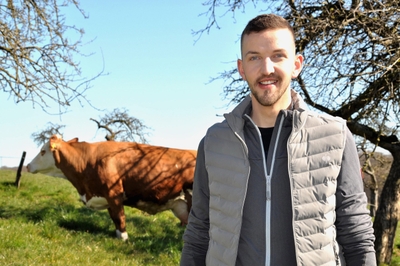 Michaels Hof liegt mitten im Bergischen Land. Den Betrieb mit Schwerpunkt Fleckviehzucht führt der 27-Jährige zusammen mit seinen Eltern Marita (56) und Stefan (58) im Nebenerwerb. Die Familie kümmert sich hier neben 30ha Grünland und 5ha Wald auch um 145 Rinder. „Meine Tiere sind mir sehr wichtig, sie haben auch alle Namen, wenn ich mich auf die Wiese stelle, werde ich quasi plattgetrampelt, weil die alle kuscheln wollen.“