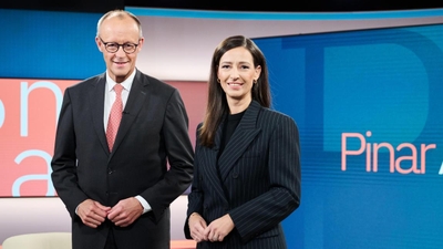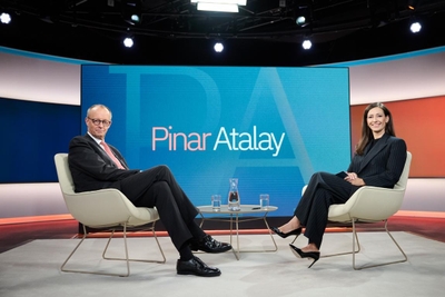 Bundeskanzler Friedrich Merz und Pinar Atalay +++ Die Verwendung des sendungsbezogenen Materials ist nur mit dem Hinweis und Verlinkung auf RTL+ gestattet. +++