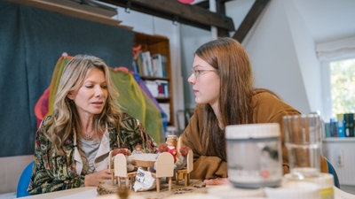 Projektpatin Ursula Karven (l.) besucht das Trauma-Therapiezentrum "Ankerland" in Hamburg. Jana erzählt warum sie bei "Ankerland" war und wie ihr dort geholfen wurde. Achtung: Bei Veröffentlichung müssen "RTL-Spendenmarathon", bzw. "Stiftung RTL - Wir helfen Kindern" erwähnt werden!! +++ Die Verwendung des sendungsbezogenen Materials ist nur mit dem Hinweis und Verlinkung auf RTL+ gestattet. +++