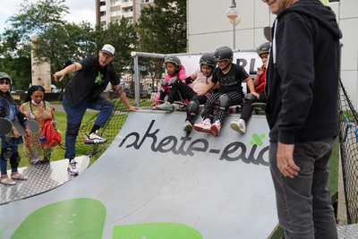 skate-aid leistet durch die pädagogische Kraft des Skateboardens umfassende Kinder- und Jugendhilfe. Seit 2009, durch Skateboard-Pionier Titus Dittmann initiiert, realisiert skate-aid weltweit Projekte für benachteiligte Kinder und Jugendliche. In den Projekten wurden Skateparks in Ländern wie z.B. Uganda, Namibia, Tansania, Palästina oder Syrien gebaut. Insbesondere in Gebieten, in denen soziale Missstände und schwierige Lebensbedingungen herrschen, unterstützt skate-aid die Kids in ihrer Entwicklung und fördert damit selbstbestimmtes Lernen und intrinsische Motivation. Zudem bietet skate-aid Orientierungshilfe, trägt zur Gleichstellung der Geschlechter bei und ermöglicht eine Steigerung des Selbstwertgefühls und Gemeinschaftsbewusstseins, der Eigenverantwortung und Entschlossenheit. Die Skateparks und das Skateboard sind dabei die notwendigen Tools, um durch die pädagogischen Workshops, die von internationalen skate-aid Volontären durchgeführt werden, nachhaltig zu unterstützen. Die Kids lernen aufzustehen, nachdem sie hingefallen sind. Das stärkt ihre Persönlichkeit und nimmt ihnen Angst, sich auch später im Leben neuen Herausforderungen zu stellen. Das ist die Mission von skate-aid: Wir machen Kinder stark!
