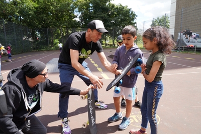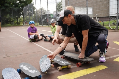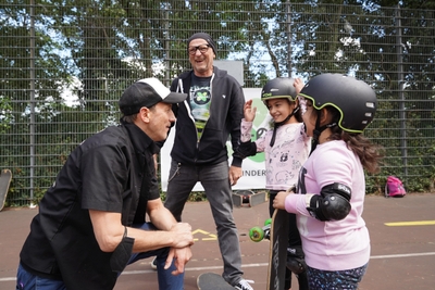 „Hinfallen und wieder aufstehen! Das Wichtigste an diesen Workshops ist, dass die Kinder hier nicht nur Spaß haben, sondern sich unbewusst auf ganz vielen Ebenen positiv verändern. Durch das gemeinsame Lernen und die dadurch entstehenden Erfolge werden sie selbstbewusster. Statt auf dem Smartphone zu daddeln können sie sich hier mit vollem Körpereinsatz aktiv einbringen. Statt nur berieselt zu werden, sind sie hier selbst erfolgreich aktiv“, erklärt Wotan Wilke Möhring, der das Engagement von Titus Dittmann bereits seit 15 Jahren unterstützt. „Die Kinder sind in diesem Lebensumfeld groß geworden und spüren tagtäglich, dass sie am Rande der Gesellschaft stehen. Durch die Erfahrungen mit den Boards, gibt man ihnen hier unterschwellig mehr Stärke mit auf ihren Lebensweg. Diese Stärke können sie dann auch an ganz anderen Punkten ihres Lebens anwenden und ausschöpfen. Sie lernen: Ich kann aus eigener Kraft etwas erreichen. Skateboard fahren ist relativ leicht zu erlernen, erste Erfolge stellen sich schnell ein. Die Kinder müssen nicht ewig lang kämpfen, sondern haben am Abend etwas geschafft, was sie am Morgen noch nicht konnten. Solche Erfahrungen motivieren und helfen.“