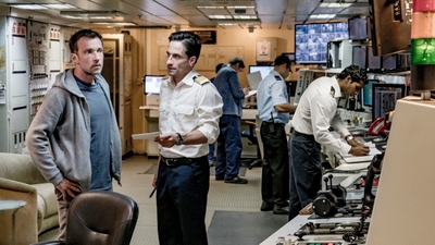 Kapitän Daniel Bonhoeffer (Oliver Mommsen, r.) zeigt Martin Schwarz (Lucas Gregorowicz) einen Zusammenschnitt der Überwachungskamera vom Tag des Verchwindens seiner Frau und seines Sohns. +++ Die Verwendung des sendungsbezogenen Materials ist nur mit dem Hinweis und Verlinkung auf RTL+ gestattet. +++