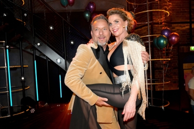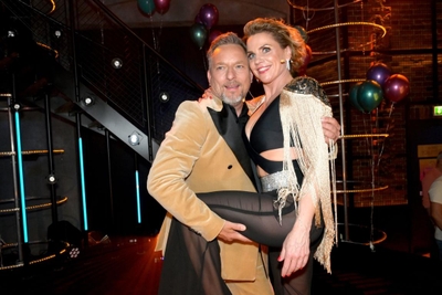 Norman Langen (l.) und Steffi Brungs (r.) freuen sich mit Yvonne (Gisa Zach) und Michael "Michi" (Lars Pape) über den gelungenen Auftritt bei dem Schlagerwettbewerb. +++ Die Verwendung des sendungsbezogenen Materials ist nur mit dem Hinweis und Verlinkung auf RTL+ gestattet. +++