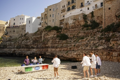 Am nächsten Morgen geht's zum ersten Set: die "Lama Monachile", eine kleine von Felsen umgebene Bucht mit kristallklarem Wasser in Polignano a Mare. Hier müssen die Top 25 ihr Können vor der Jury beweisen. Wer schafft es in die nächste Runde und für wen ist der Traum vom Superstar hier schon vorbei?