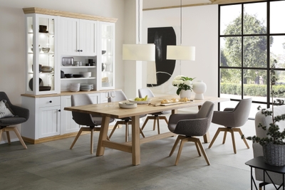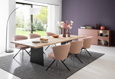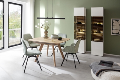 Ausziehtische sind einfach praktisch. Bei Bedarf wachsen sie in Nullkommanichts über sich hinaus. Kommen Gäste oder die Verwandtschaft, verlängert eine Klappeinlage den Esstisch um 65 oder sogar um ganze 100 Zentimeter. An unseren Ausziehtischen können in der größten Variante bis zu 14 Personen Platz nehmen. Ist der Besuch verschwunden, macht sich der Tisch ruck, zuck wieder klein. Flexibilität bietet auch unser Stuhlsystem Switch, bei dem Sie zur Sitzschale im Bezugsstoff Ihrer Wahl ein Untergestell sowie Zusatzfunktionen nach Belieben kombinieren können. Auf bequemen Polsterstühlen vergeht die Zeit wie im Flug. Erst recht, wenn sie mit einer Dreh- und/ oder Schwingfunktion ausgestattet sind. Denn so können Sie sich jedem Gesprächspartner im Raum optimal zuwenden und bleiben in Bewegung.