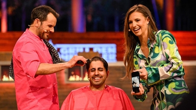 Laura Wontorra und Steffen Henssler sind sich einig: Die Mähne von "Zivi" Howan muss weg! Und das übernehmen die beiden höchstpersönlich. "Ihr wollt das machen?!", ruft Howan entsetzt. Verständlich – schließlich hatten weder Laura noch Steffen je Schere oder Rasierer in der Hand. Doch tapfer erträgt Howan das Debakel, bis nur noch ein paar Millimeter übrig sind. Dann taucht Stefano Zarrella auf und setzt noch einen drauf: Gewinnt er sein Dessert, fallen auch bei ihm die Haare. "Es tut mir leid, Mama!"