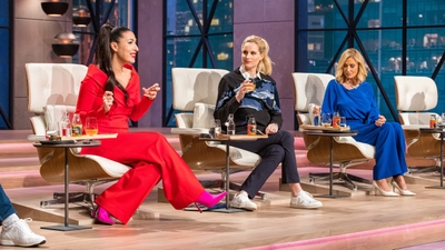 Die Investorinnen (v.l.) Tijen Onaran, Janna Ensthaler und Dagmar Wöhrl nehmen den Cashew Fruchtsaft von "Akoua" geschmacklich genau unter die Lupe. +++ Die Verwendung des sendungsbezogenen Materials ist nur mit dem Hinweis und Verlinkung auf RTL+ gestattet. +++