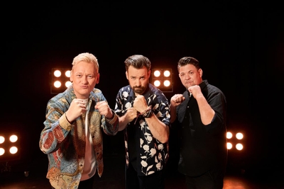V.l.: Knossi, Jan Köppen, Tim Mälzer +++ Die Verwendung des sendungsbezogenen Materials ist nur mit dem Hinweis und Verlinkung auf RTL+ gestattet. +++
