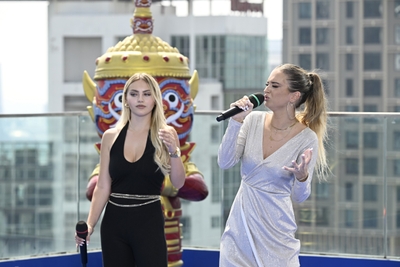 Marleen Schäfer (l.) und Monika Gajek performen auf dem „Rooftop“ des „Sindhorn Midtown“ Hotels in Bangkok, dem ersten Set des Recalls in Thailand, vor der Jury den Song "Skyfall“. +++ Die Verwendung des sendungsbezogenen Materials ist nur mit dem Hinweis und Verlinkung auf RTL+ gestattet. +++