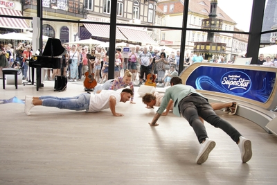 Starke Argumente, bei DSDS voll durchzustarten, hat auch Muskelpaket Nikola (28) aus St. Erhard: Der stylishe Schweizer war sogar schon mal Europameister im Bodybuilding und tauscht nun Hantel gegen Mikrofon. Vor dem Auftritt gibt´s aber zunächst ein ausgiebiges Workout mit der Jury: Wer schafft die meisten Liegestützen im Glaskubus?