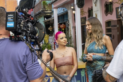 Natalie Nock (l.) und Aileen Sager performen in „Old Phuket Town“, dem dritten Set des Recalls in Thailand, vor der Jury den Song „Warum hast Du nicht nein gesagt". +++ Die Verwendung des sendungsbezogenen Materials ist nur mit dem Hinweis und Verlinkung auf RTL+ gestattet. +++