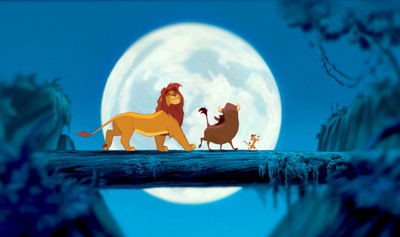 In Begleitung seiner Freunde Pumbaa (M.) und Timon (r.) macht Simba sich auf den Weg nach Hause, um sich seiner Verantwortung zu stellen. +++ Die Verwendung des sendungsbezogenen Materials ist nur mit dem Hinweis und Verlinkung auf RTL+ gestattet. +++