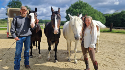 Lisa Röckener nimmt sich Warmblut Denver an, der sich standhaft weigert, in den Hänger zu steigen – eine echte Zerreißprobe für seine Besitzerinnen Hannah und Marie.
