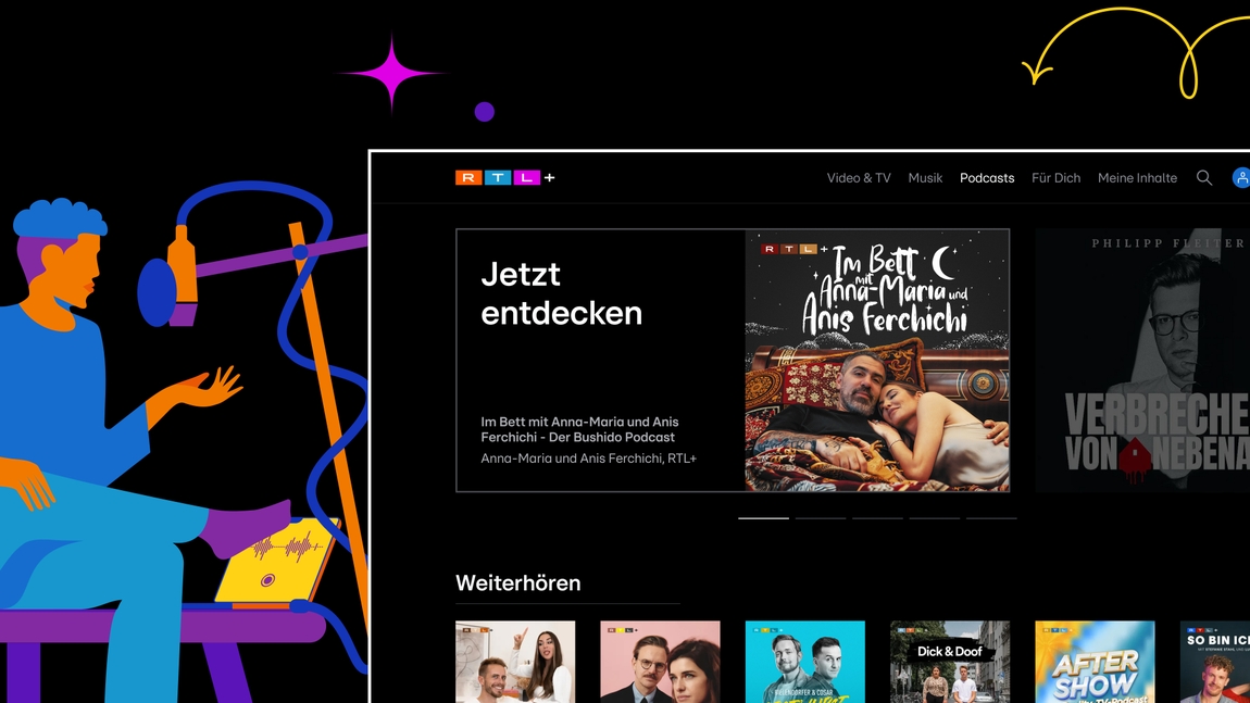 Mit der Integration eines umfangreichen Podcast-Angebots macht der Streamingdienst RTL+ den nächsten Schritt auf dem Weg zum gattungsübergreifenden Entertainmentangebot. Das Podcast-Angebot von RTL+ umfasst viele Tausend Formate, darunter rund 200 Eigenproduktionen der RTL-Produktionseinheit Audio Alliance und wird mit weiteren exklusiven Neuerscheinungen weiterhin ausgebaut.